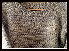 El primer patrón que tejí con agujas circulares fue uno de esta diseñadora que lo podéis encontrar en la revista "Knitscene, Spring 2012" era el "Brindle pullover". No lo hice de una sola pieza, pero sí con algunas modificaciones para ahorrar el máximo de costuras, las mangas fueron tejidas por separado (aunque en redondo) y después lo único que tuve que hacer fue coser ambas mangas al resto del cuerpo.